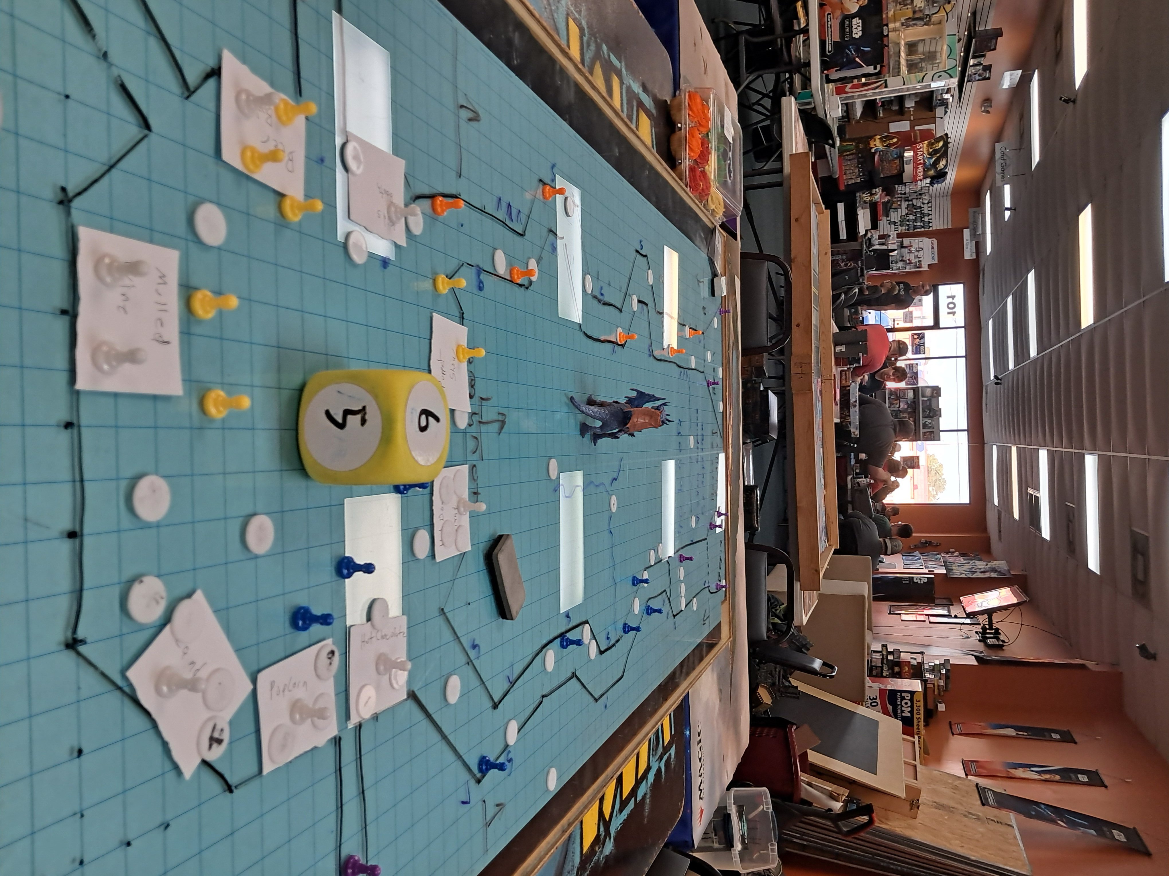 Suddenly from upstairs in the tower an Azer comes down and Thor’s Hammer Liu, four small elemental flies down on Zephram and Geronimo.