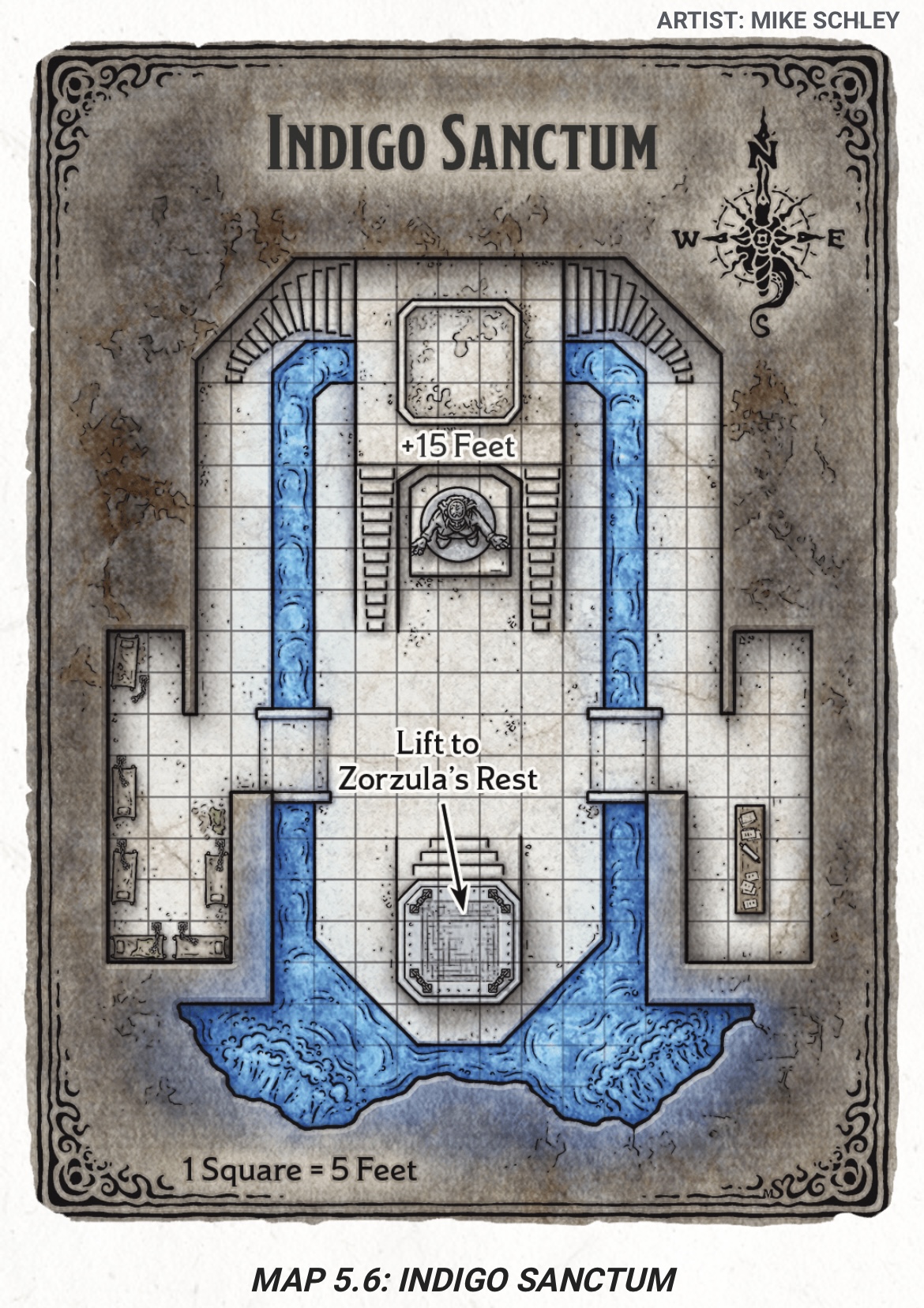 "Most of this room has collapsed into a flooded pit. The dark water ripples and splashes strangely, as though something lurks deep within it"