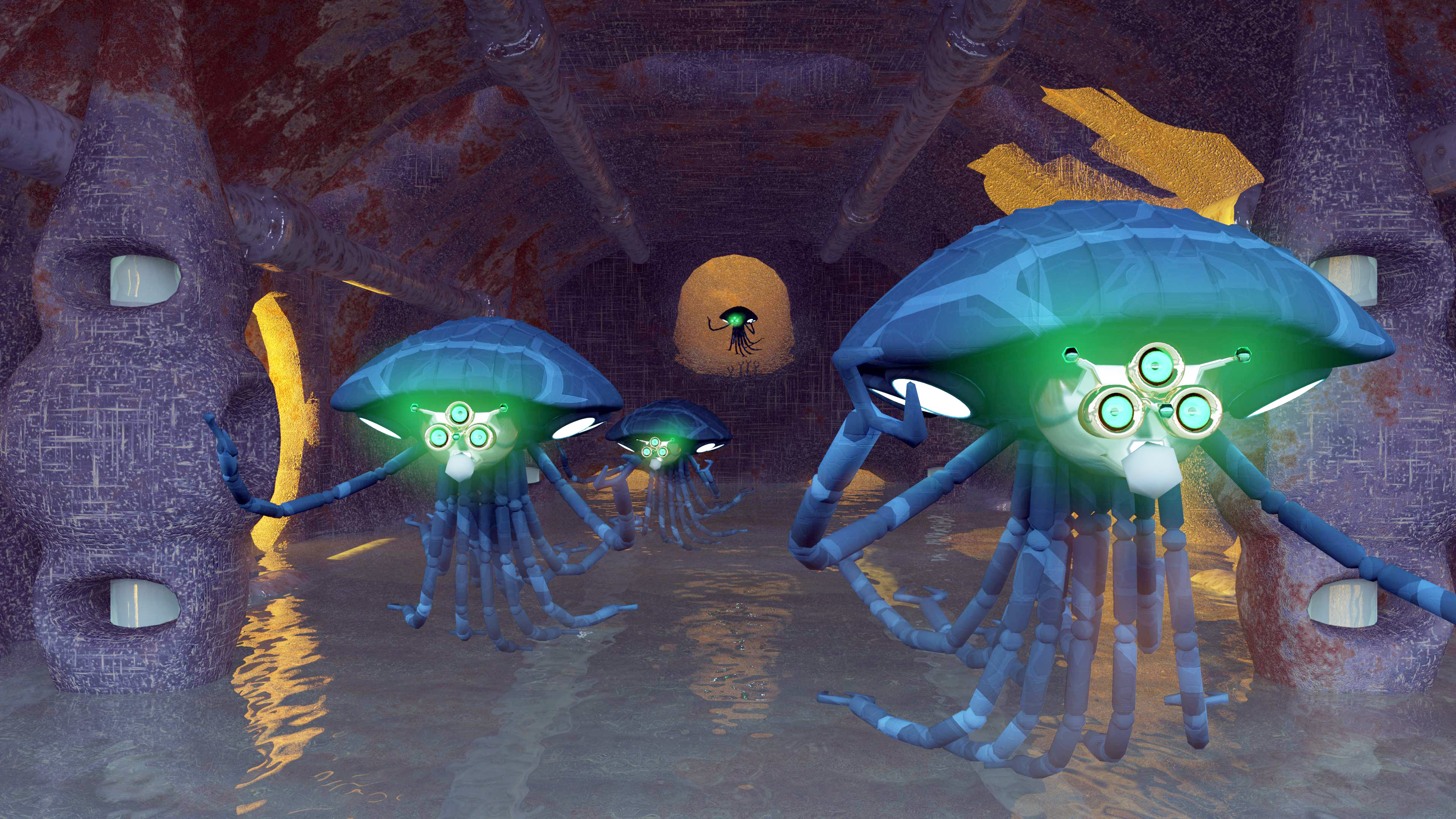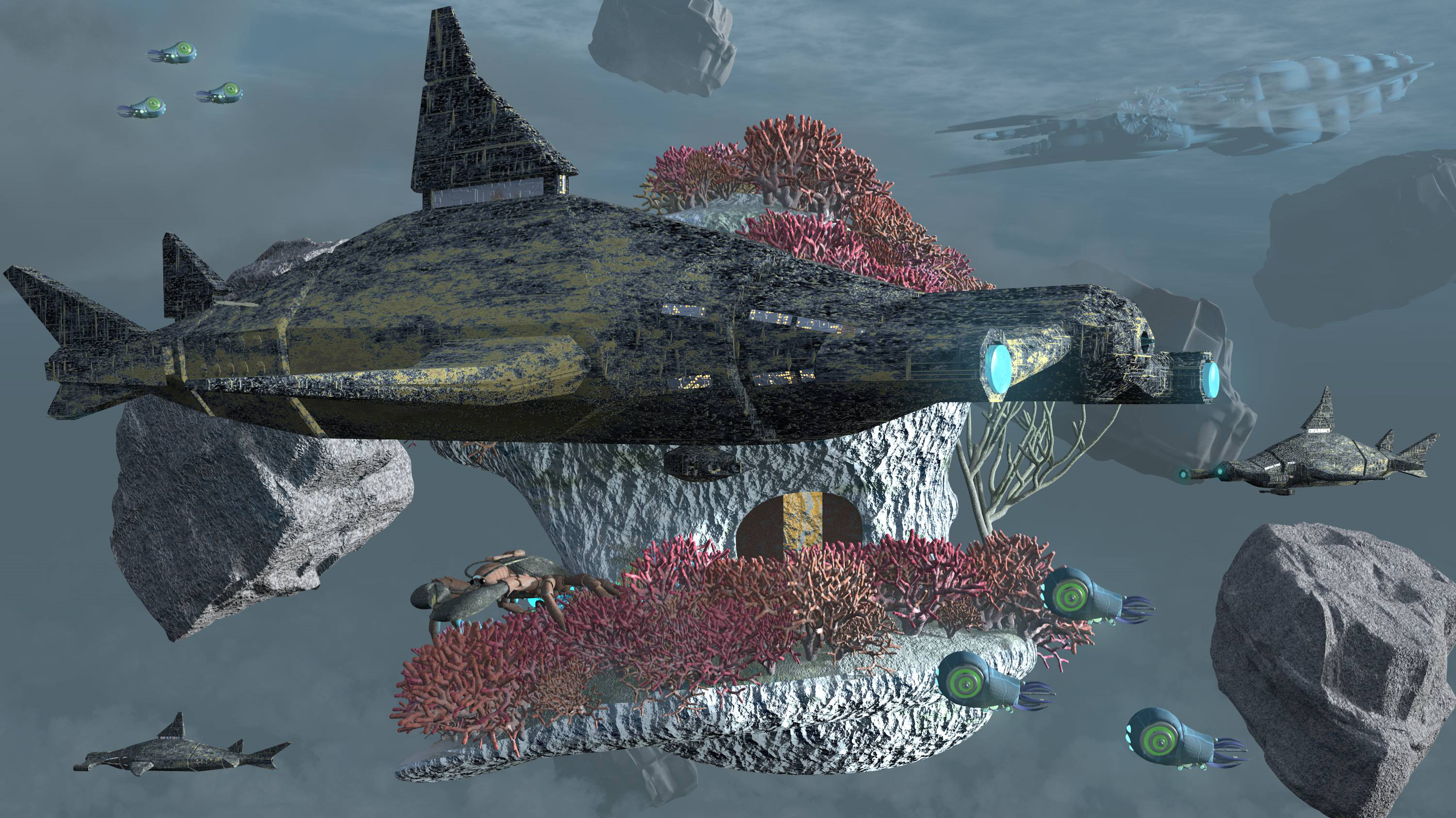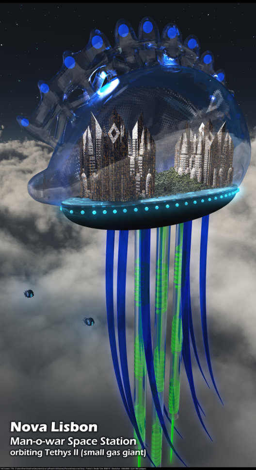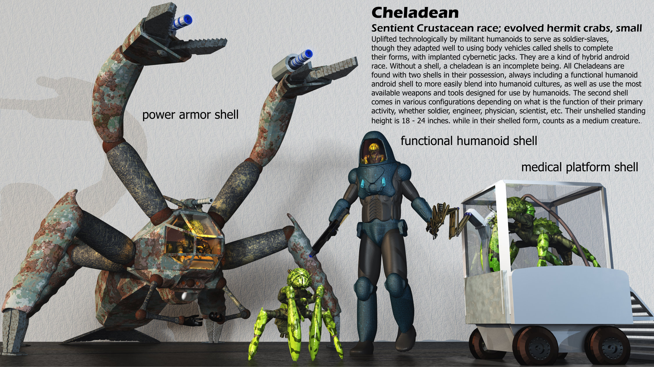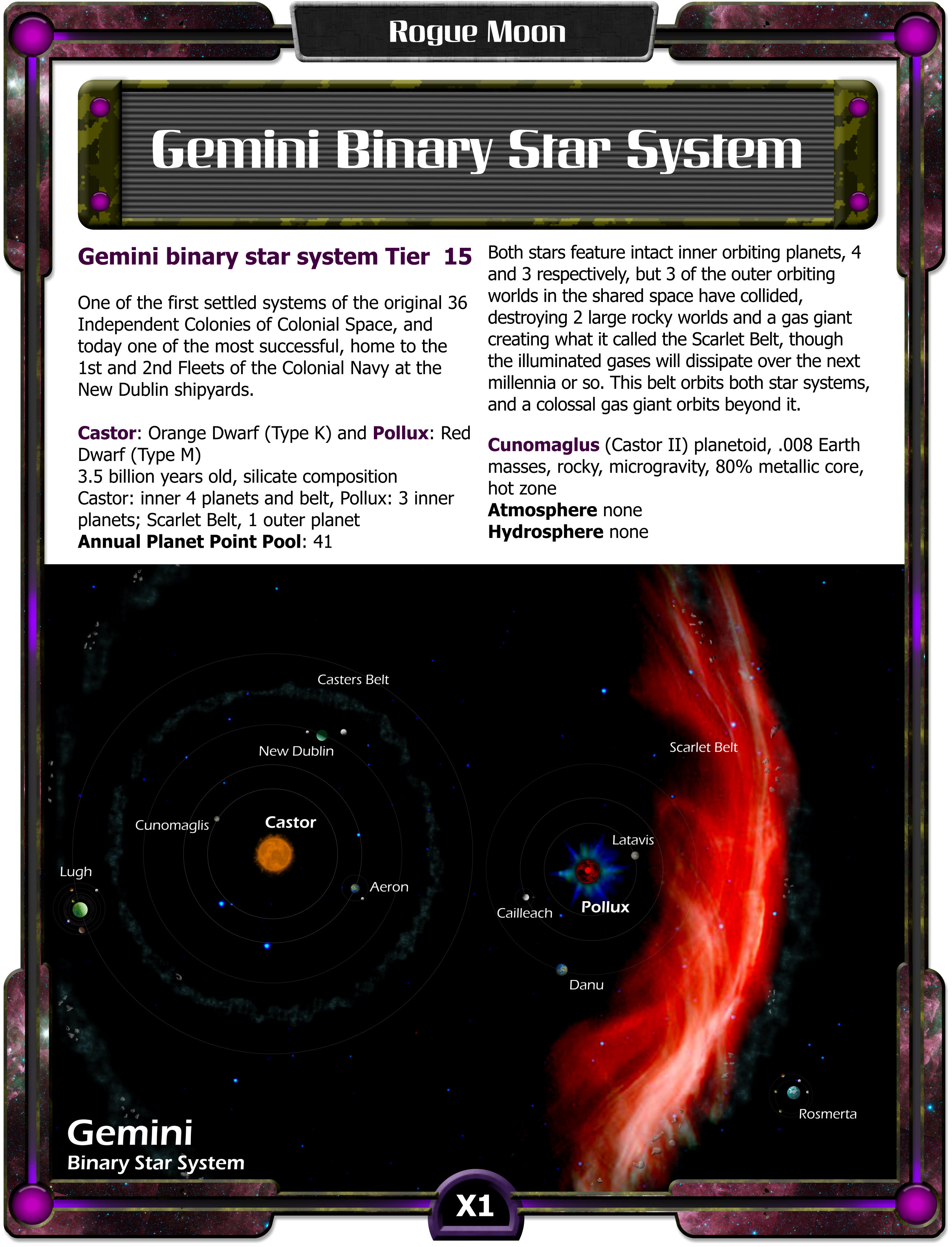 Posted below: the Gemini binary star system, location of one of the wealthiest of the original 36 colonies, at New Dublin. Although the surface features a light atmosphere and no surface water, the pressure is fully breathable beneath the surface, where a labrynth of vast natural cistens and water filled tunnels where urbanization occurs as subterranean arcology - instead of skyscrapers, these wall clinging towers are inspired by hexagonal basalt columns. Also the Cheladeans, alien hermit crab race as a recent member state of the colonies.