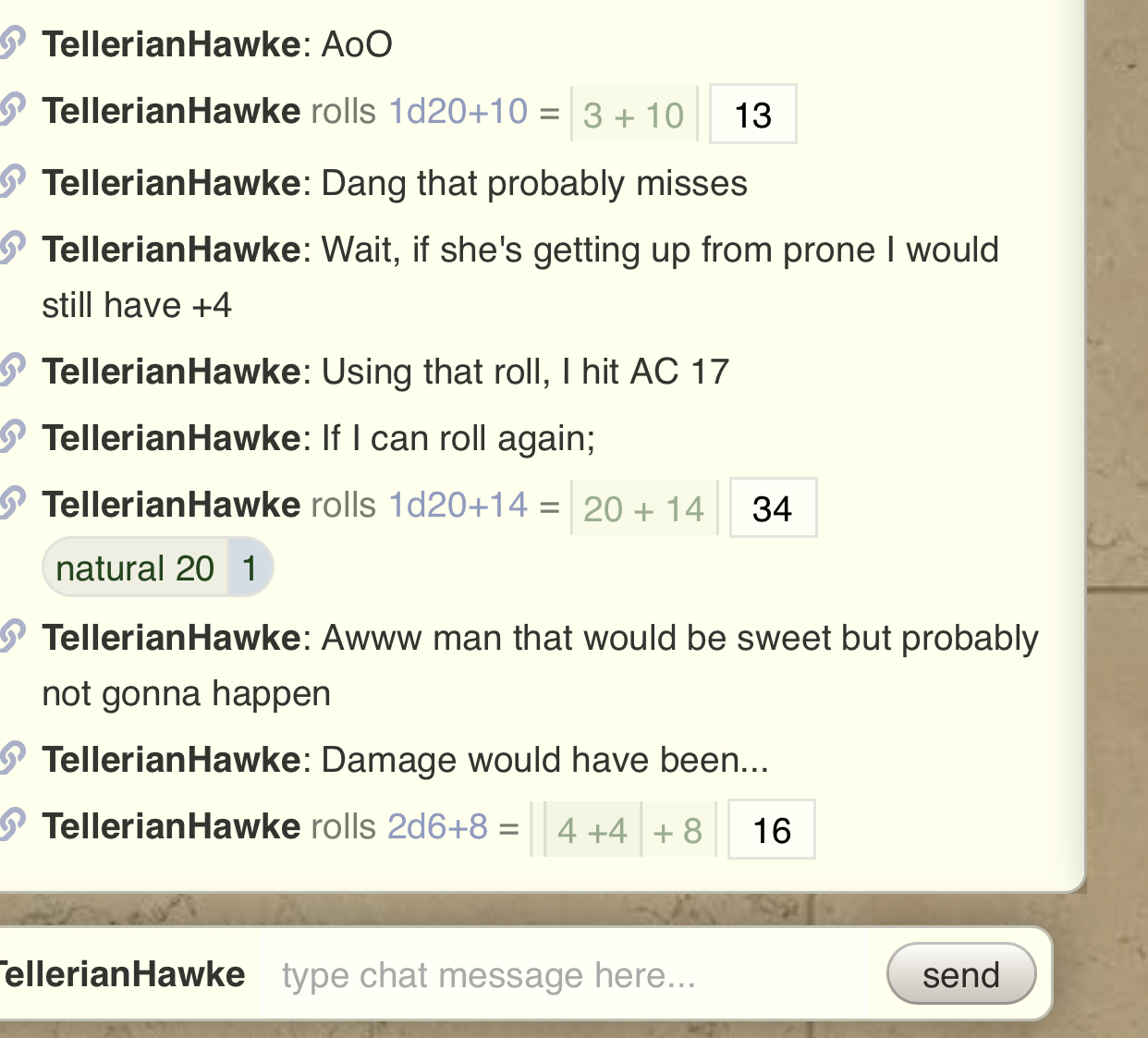 So, Angus misses with his AoO.Woke up to get a drink of water and saw all of this, lol. Don't have tine to post, but here is raw data: