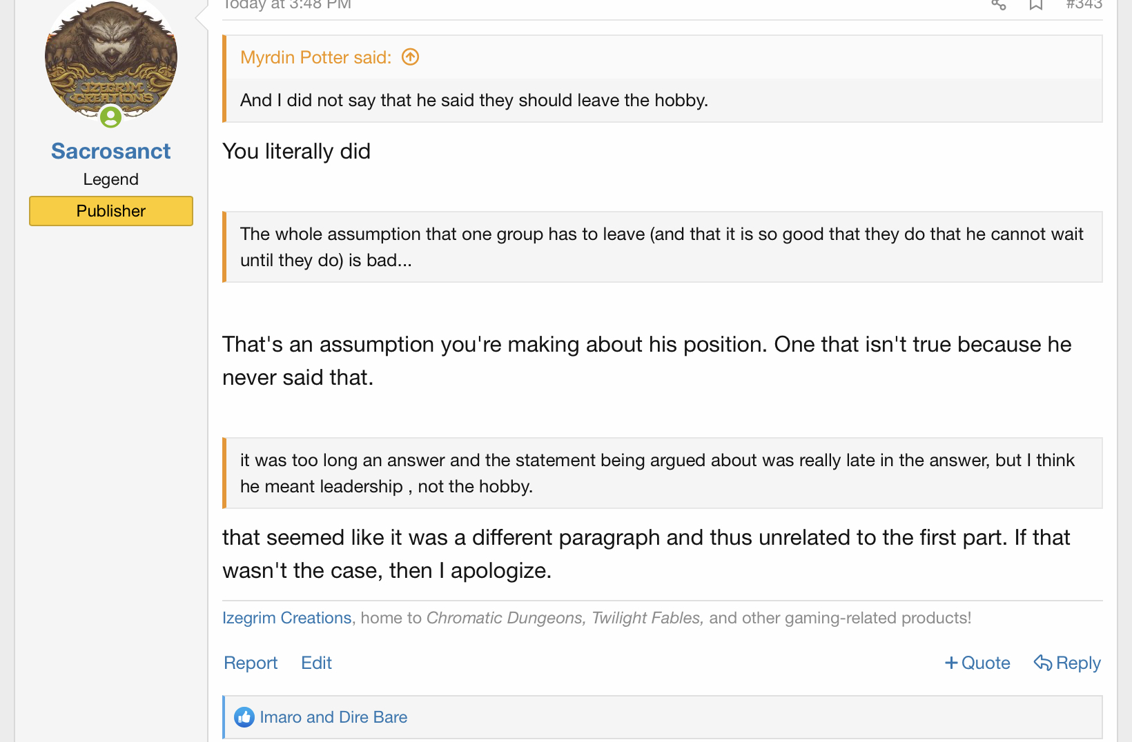 You did it again. You did not apologize to me. Look up in this thread. Nothing. I received zero notifications that you replied to me other than your outright lie that I literally said leave the hobby when I did not even use the word hobby which breaks literally.