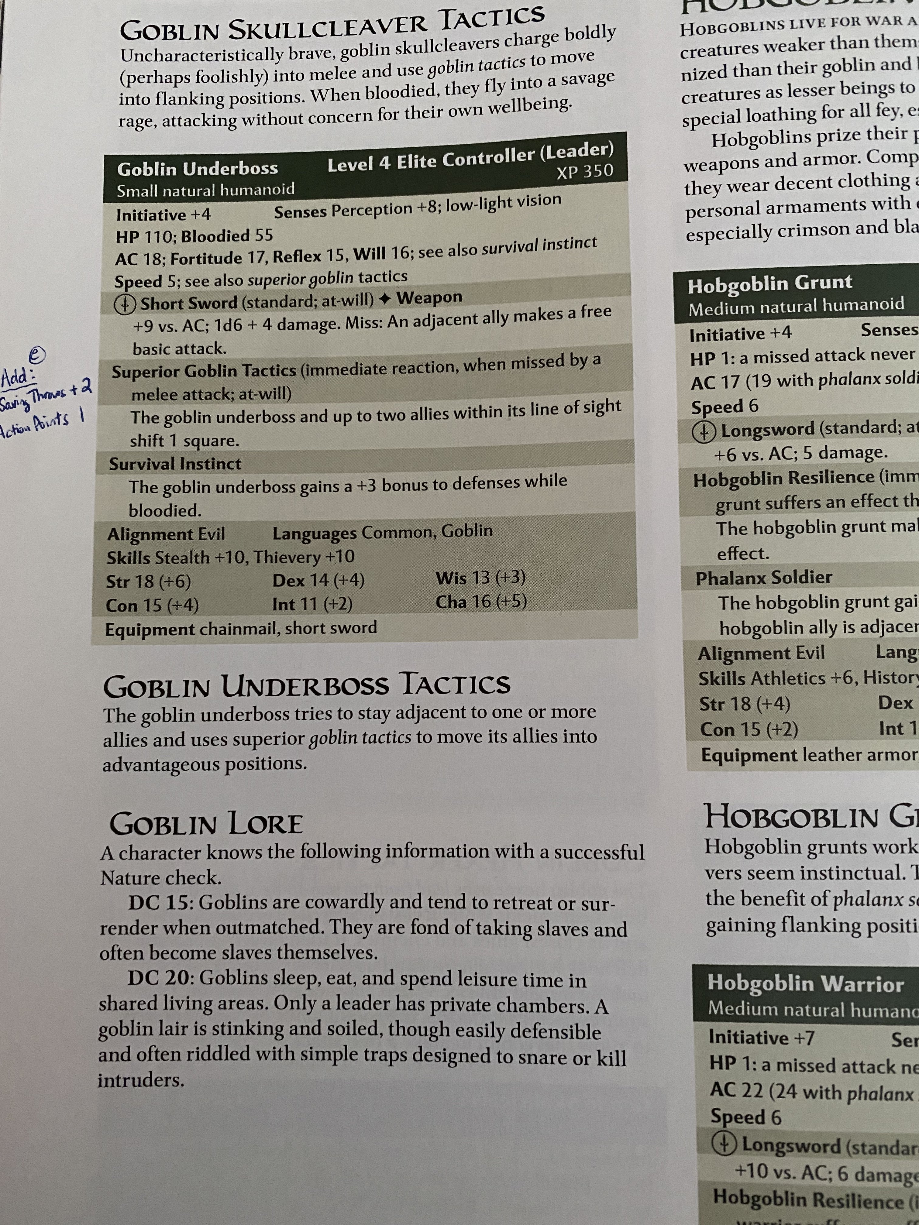 Flee Mortals! also has a goblin warrior that is not a minion. This one is mechanically very similar to the base goblin from the MM with the addition of an important synergy with the movement not provoking ability: a reaction allowing the goblin warrior to move if an enemy misses it.