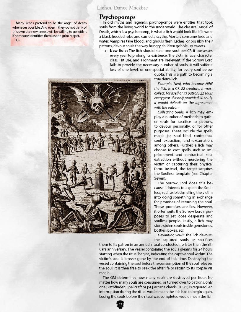 Liches as PCs are possible, and something I explore in the book. They are some challenges to playing a lich. For one, liches tend to evil, and so what kind of campaign could you run a lich? Also, they tend to be powerful, so what is the power level of the campaign?