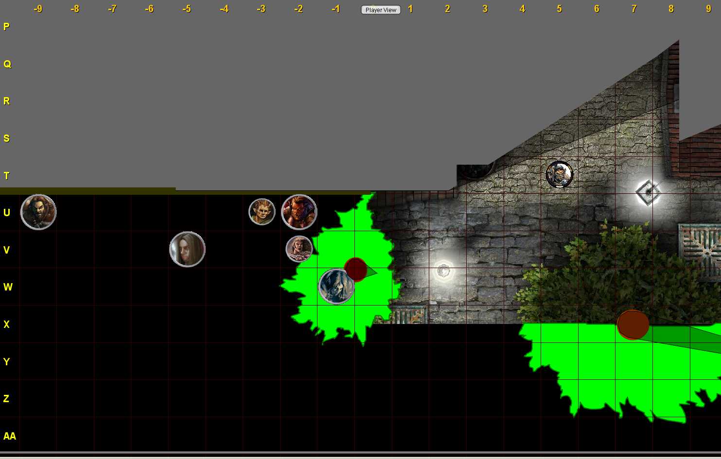 In his heavy rusted armor, Thorn knows he'll probably give-away his party's position, so he decides to advance only half-way down the dark alley. He still listens intently, hoping to hear what is going on.