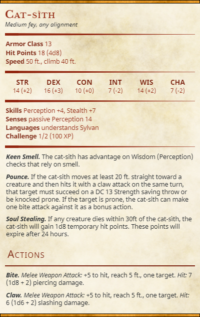 Begging: The monster has mastered the art of others feeling sorry for it. If reduced to ¼ or less of its maximum HP, the monster can take an action to beg. All opponents within a 30ft radius must make a Wisdom saving throw or feel sorry for the creature and not attack it until that creature performs another hostile action.