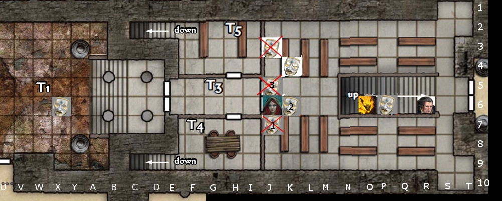 Acolyte (AC 15): -3/13 HP, Dying, Prone