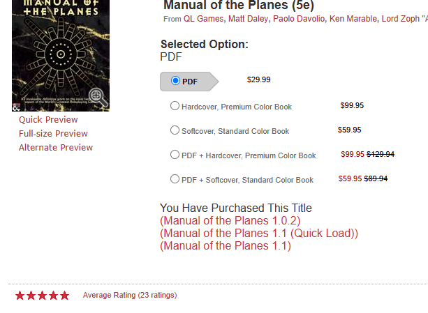 Using what assets we are able to obtain and reverse-engineer, we are now currently working on a Print Edition of Manual of the Planes 5e which will be released on its own product page in the coming months. Save for one egregious flavor quote which Andrew added with the objections of the team, this book will contain all of the text from the original PDF release.