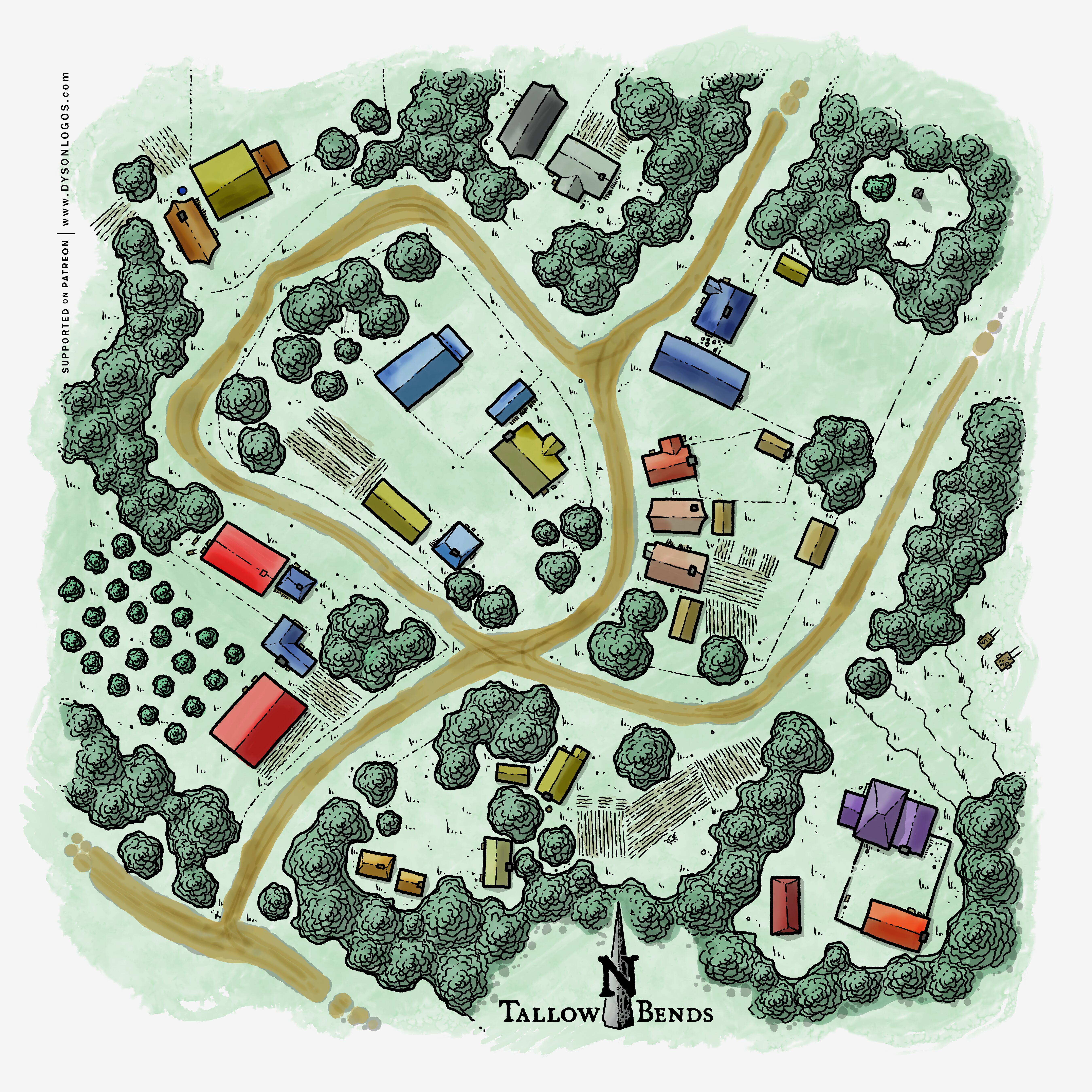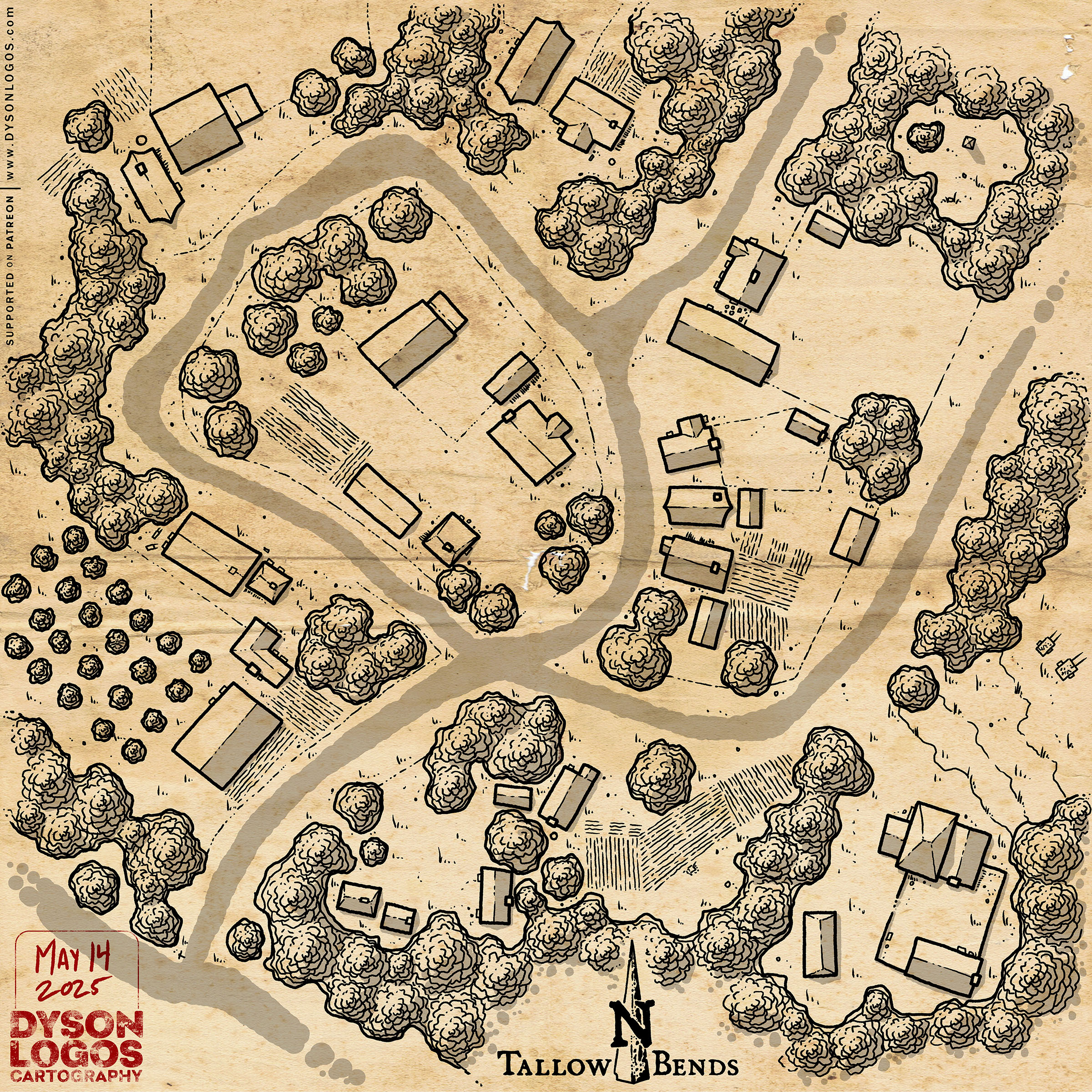 The 1200 dpi versions of the map were drawn at a scale of 300 pixels per square and are 14,400 x 14,400 pixels (48 x 48 squares) in size. To use this with a VTT you would need to resize the squares to either 70 pixels (for 5′ squares) or 140 pixels (for the suggested 10′ squares that this is designed around) – so resizing it to either 3,360 x 3,360 or 6,720 x 6720 pixels in size, respectively.