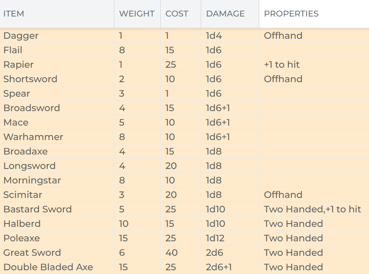 I haven't done ranged weapons yet but can you look through this generic weapon list and