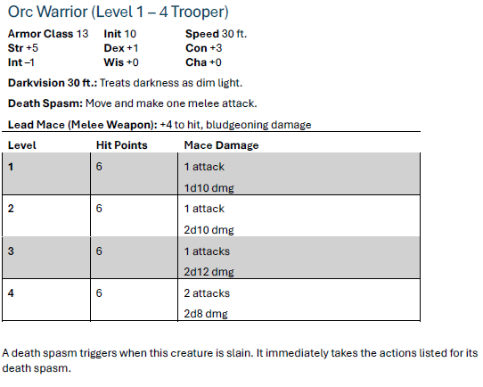 • Even a normally-optimized martial character (+3 mod) using something like a longbow is going to fail to one-tap the Warriors 25% of the time.