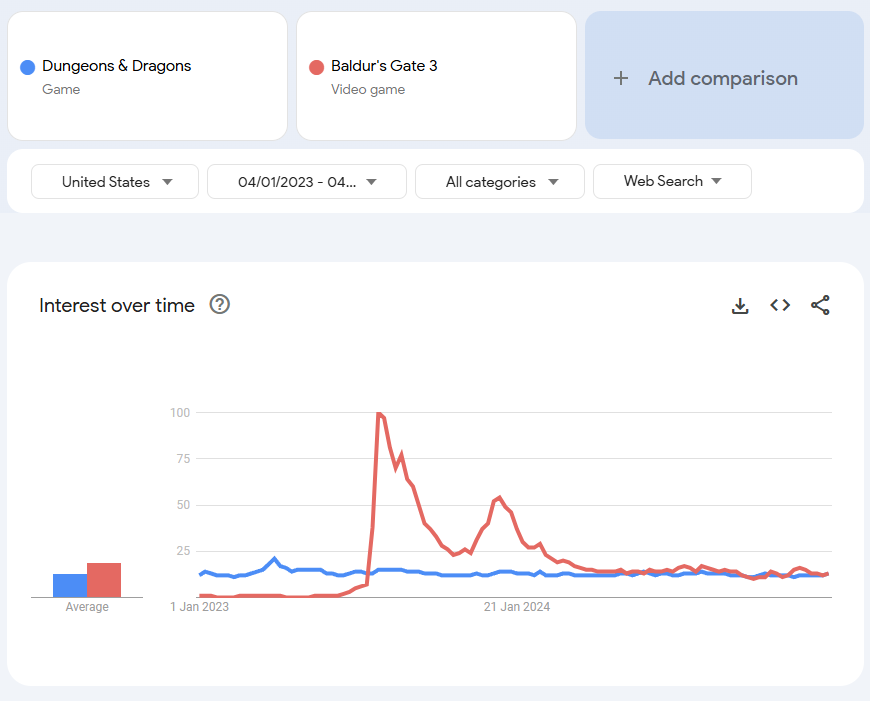 Isn’t that because One D&D changed names several times. might be worth considering if a drop off on searches for One D&D was matched by an increase in D&D 2024.