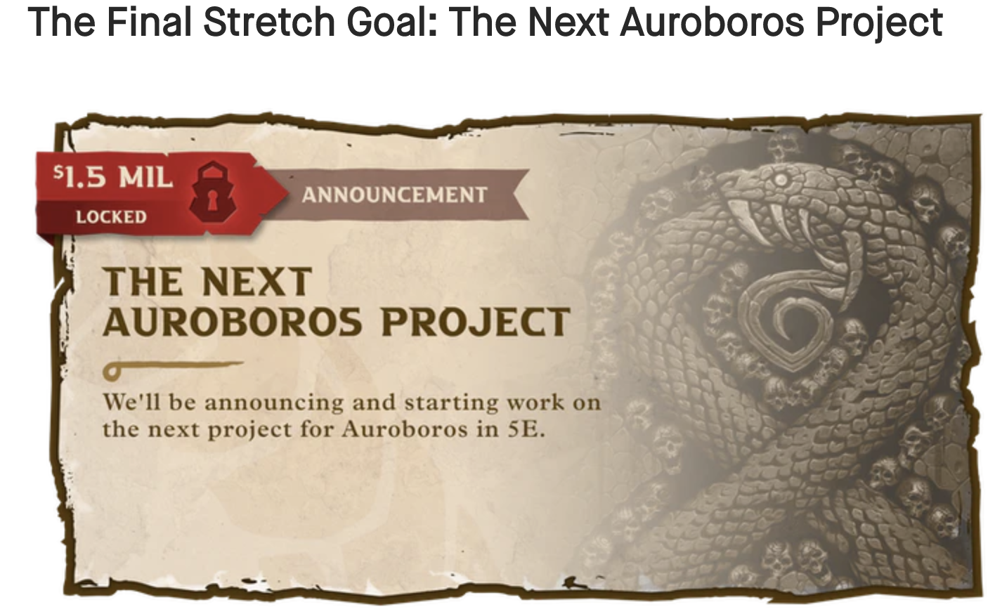 I agree that people can get carried away with stretch goals, but it wouldn't take much effort to either price out something extra for print rewards (another ribbon for the book, a slipcase, etc.) or some tiny amount of additional content, like two more pages of monsters or locations. But enticing people to add another 50 percent to your current total with the promise of...marketing? That's just impressively bad Kickstarter campaign design.