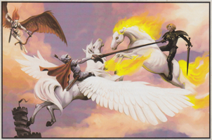 Finally, during the 2nd Edition era, TSR produced the Spellfire collectable card game. The nightmare featured on card #76 of the Birthright expansion, but the card simply recycled the artwork from the Monstrous Manual.
