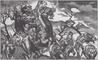Even without a rider, a nightmare is a dangerous foe. They are ill-disposed to most forms of life, and will attack without provocation. As well as a bite attack (2-8 damage), and burning hooves (two attacks, each doing 4-10 damage), the nightmare is also able to breathe out a cloud of hot smoke which causes a -2 penalty to attacks and damage if the saving throw is unsuccessful. It has an extremely good armor class (-4), high speed (15" or 36" in flight) and 6+6 hit dice.
