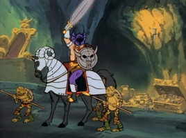 Nightmares have low-key appearances in a number of 1st Edition adventures, including the drow series (D1-D3). The device of the drow House of Noquar is a bronze nightmare's head and the drow of Erelhei-Cinlu, particularly nobles, keep nightmares as steeds. The affinity of drow for these exotic mounts extends right up to Lolth herself. The Stable of the Nightmare in level two of Q1: Queen of the Demonweb Pits houses Lolth's personal steed, cared for by two manes. Her nightmare is wearing horseshoes of a zephyr, which, given that these allow a steed to travel without touching the ground, seems a little redundant for a flying mount.