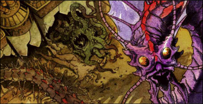 The remorhaz didn’t make the cut for the first 4th Edition Monster Manual, but it does get to show off on a double-page illustration at the beginning of the Monster Manual 2.