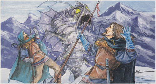 The Ecology of the Remorhaz appeared in Dragon #114. Co-authored by Ed Greenwood and Kurt Martin, the story opening the article takes place in the Krylen Peaks. Krylen is, interestingly, the name of two peaks on Earth, on in the Antarctica and one in the Arctic. This is one of the more detailed of the Ecology series of articles, and provides a wealth of information on remorhaz physiology and the creature’s life-cycle. It states that “remorhaz” is both singular and plural, but this convention would be discarded from 3rd Edition onwards, with “remorhazes” the currently accepted plural.