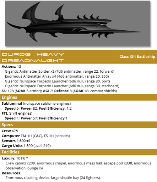 This is a very preliminary start at a minimal ship data card for use in starship combat. It's designed to just present the info you'll likely need in order to speed up play - if you need the full breakdown, you can always look it up. It would probably include a basic schematic on the right to liven it up a bit.