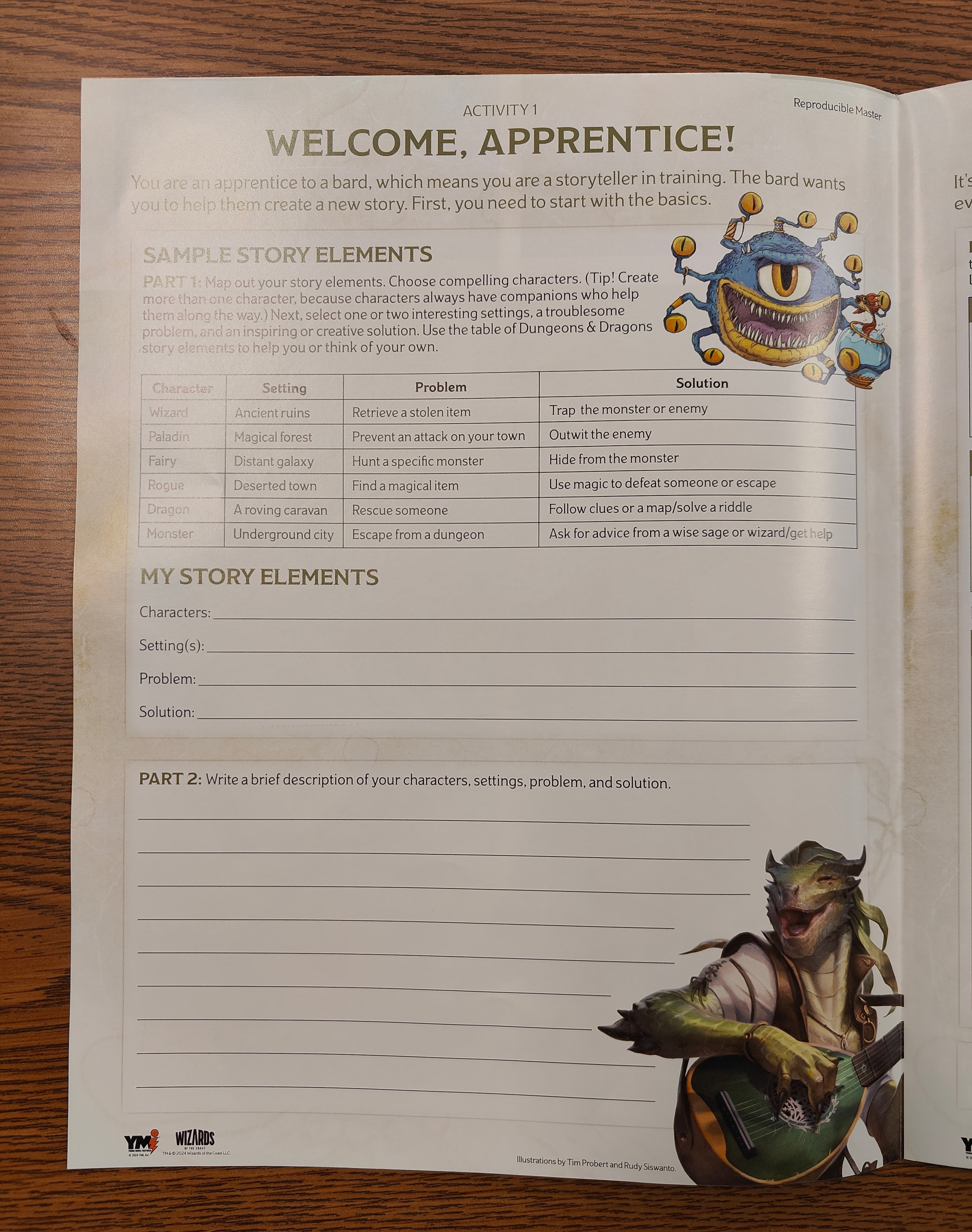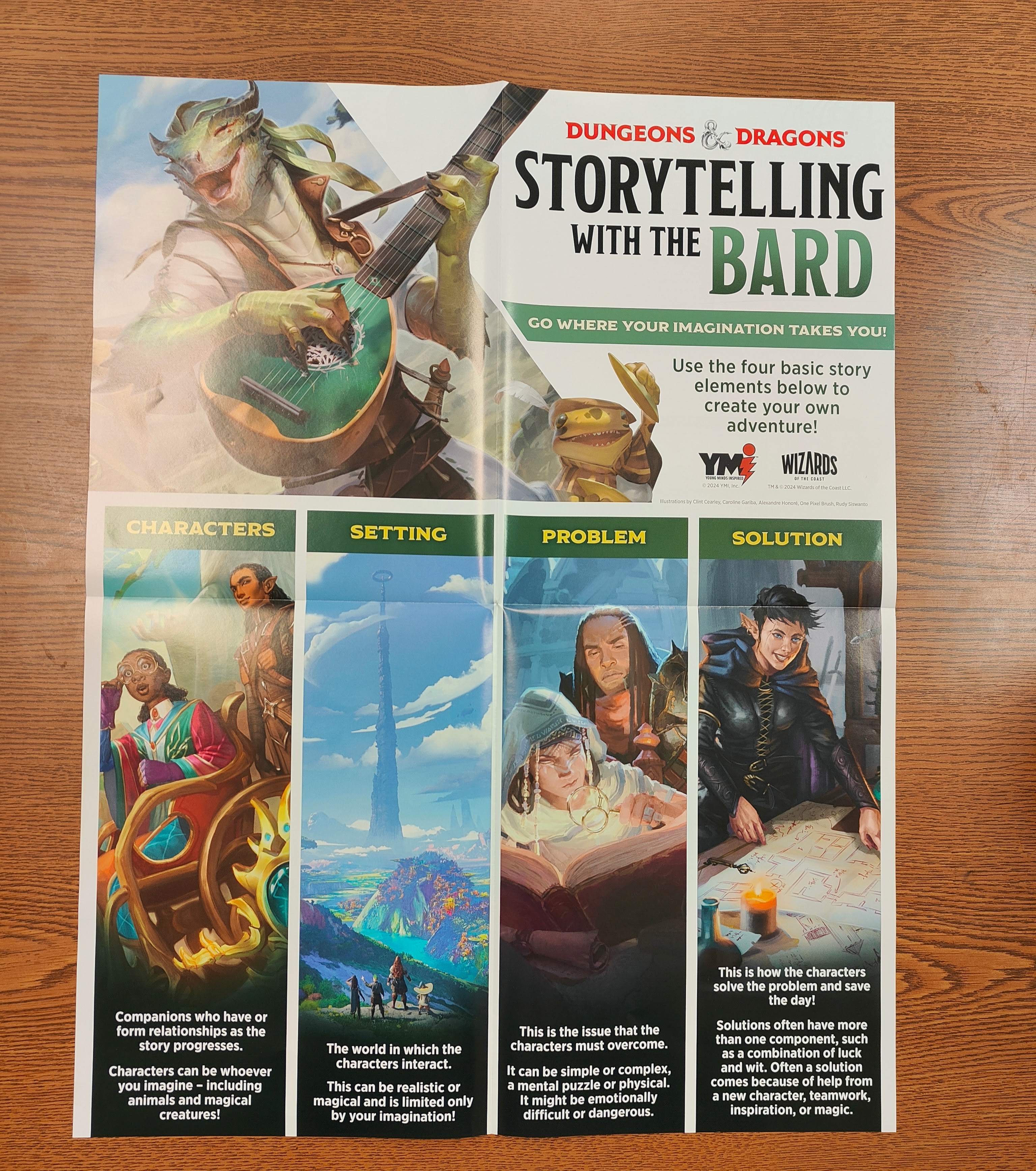I was not aware of these materials before receiving the package which seemed strange, since I follow RPG news very closely. It appears they are intended for grades 3-5 and 6-8 with three distinct storytelling activities per grade level cohort, which then unfolds into a large poster discussing the components of storytelling. There's a blurb on the front that mentions more complementary materials coming out in the fall.