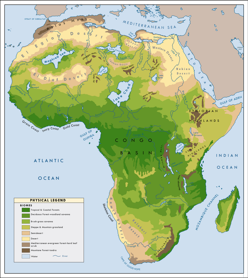 How about this for inspiration: Imagine a civilization in the Sahara in 5000 BC, before the rapid desertification. A high culture, the ancestor of Egypt and Mesopotamia, perhaps either a colony of Atlantis before it sunk in 9500 BC, or Atlantis itself (see the Richat Structure). Here's a map for you:
