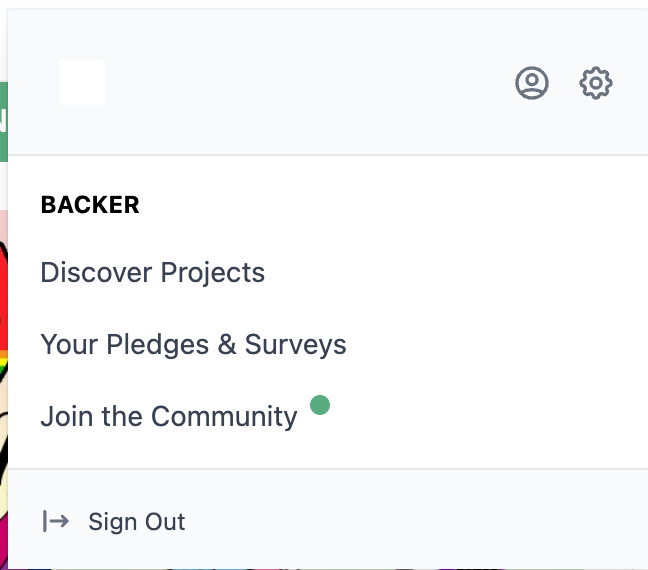 Home/Front page. For me both are similar. Highlighting new projects, most successful projects, projects their algorithms think I might be interested in. Backer kit has some more interactive elements like polls. Mostly I find find neither particularly useful for me personally and I generally spend little time on the front pages of these sites. Both have a user icon to access your account info in the upper right of the page with a search icon next to it. Kickstarter has a prominent link at the top of the site to "Start a Project" for creators. Bakerkit doesn't. Doesn't matter for me as a 100% baker/consumer. Bakerkit has a mountain icon acting as the home button for the top navigation. Kickstarter uses it logo. Kickstarter has a clear "discover" text link with some of the more popular categories listed in a horizontal text menu. Bakerkit has a hamburger icon you have to click on to pull up the discover menu. The former may be a bit more convenienct with one less click, but the later gives a cleaner and less messy page design. I find both pretty much the same, with a slight preference for Bakerkit. But I don't find either ideal. I would prefer highlighting the status of projects I'm currently backing right on the home page, but I understand why they want to use this space to advertise and entice you to click on new projects.