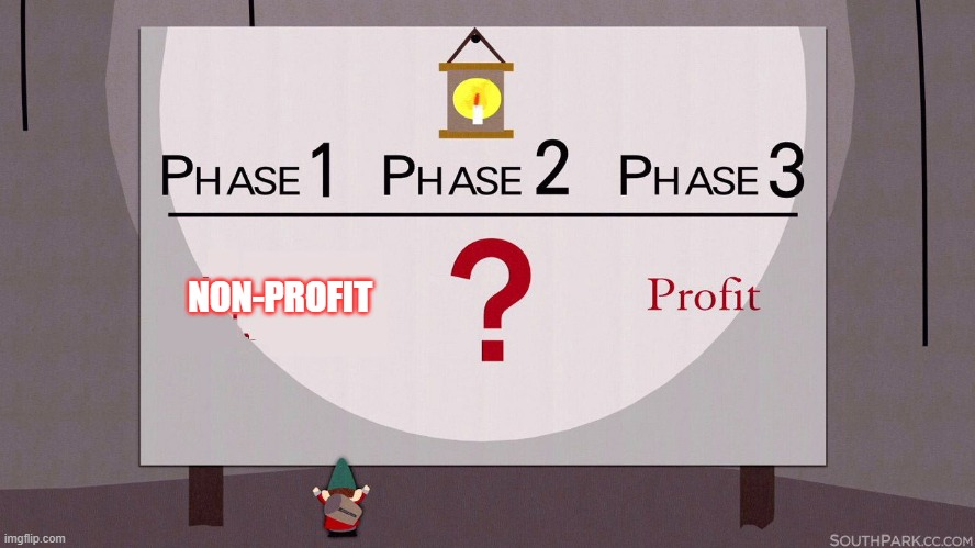 Assuming this this wasn't their plan all along, I mean scraping people's art for profit would automatically be infringement."Wait a minute. We can't make money off this if we are a non-profit!!! Quick, restructure!"