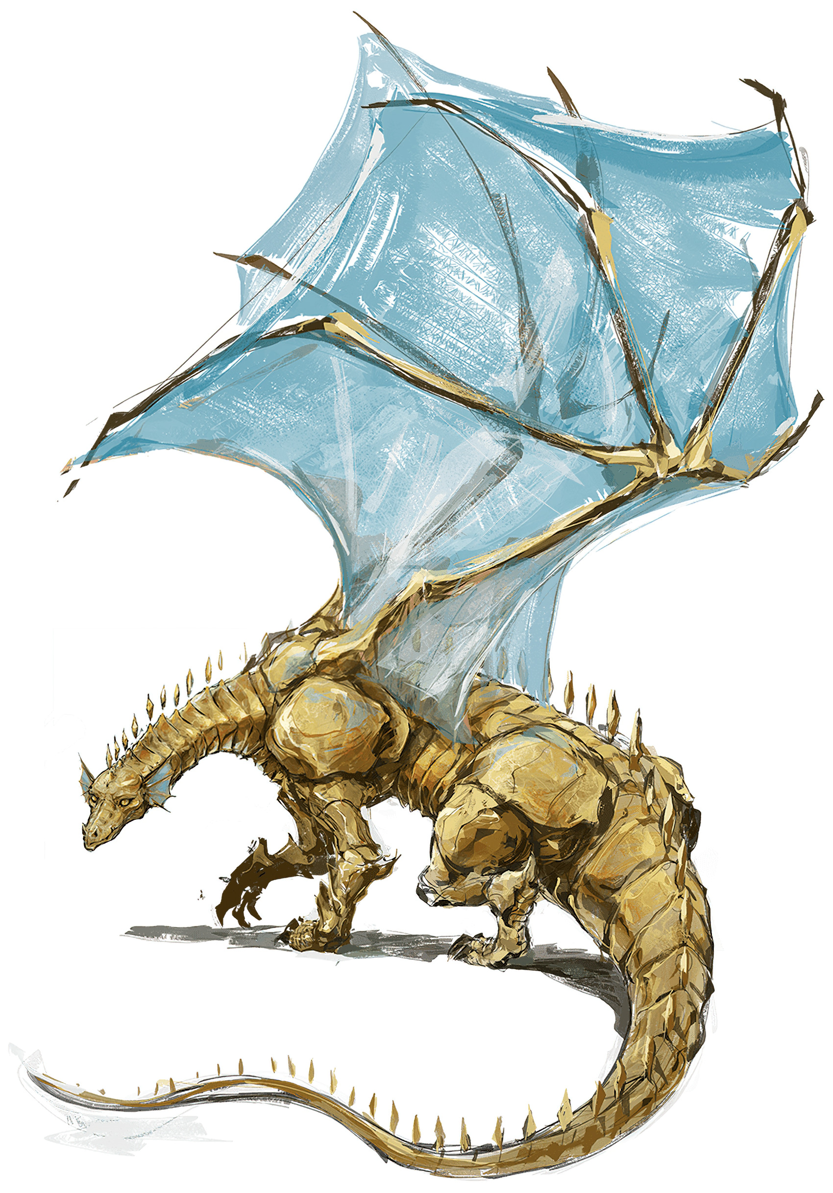 Yeah, I mean, if WotC is commissioning the art, and what they’re asking for is a dragon with wings that go the wrong way, then it is absolutely correct to give them what they’re asking for, and to do so to the best technical execution you can manage. I think it’s a godawful design, but I can’t fault the artist for doing what the client wanted, and doing it about as well as such a thing can reasonably be expected to be done. But, no matter how good the execution, the concept itself just flat-out doesn’t appeal to me.I think the slight ambiguity of the Fizban's official art is why Palmer mentioned "leaning into it." Palmer's art is undeniably back-winged, much like this concept art. Very much, "If this is the design guidance I'm getting, I'm going to go ham on it and not try to 'fix' things or occlude what's happening - these are backwards wings, and they will not be denied!"