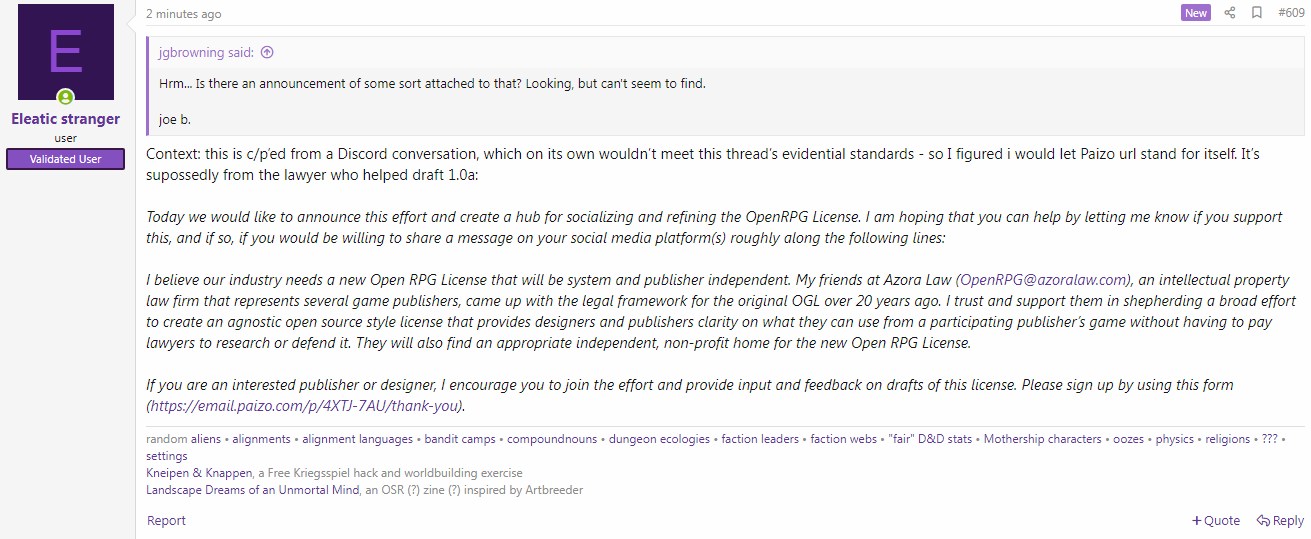 Paizo and the Open RPG License?