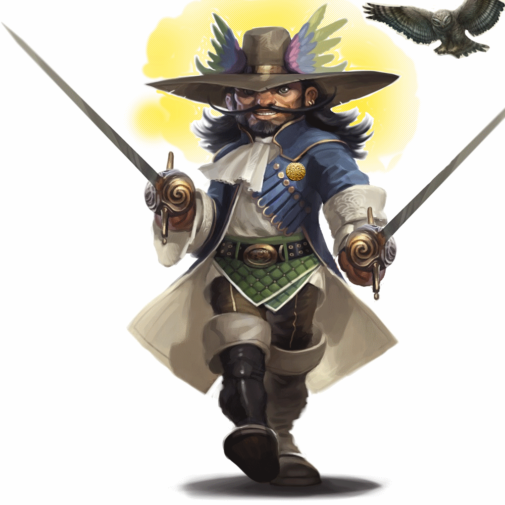 It started out with someone wanting an image of a gnome with a single rapier that needed a second rapier. So a bit of futzing with paint.net, a request for an owl theme and the rest is history. :)