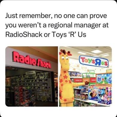 "You were a regional manager at Radio Shack and Toys R Us? What a coincidence -- I was, too! Welcome aboard!"