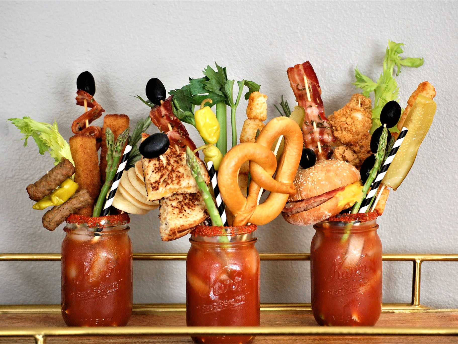 7. Rim the glasses with a mix of celery salt, kosher salt, and Tajin.