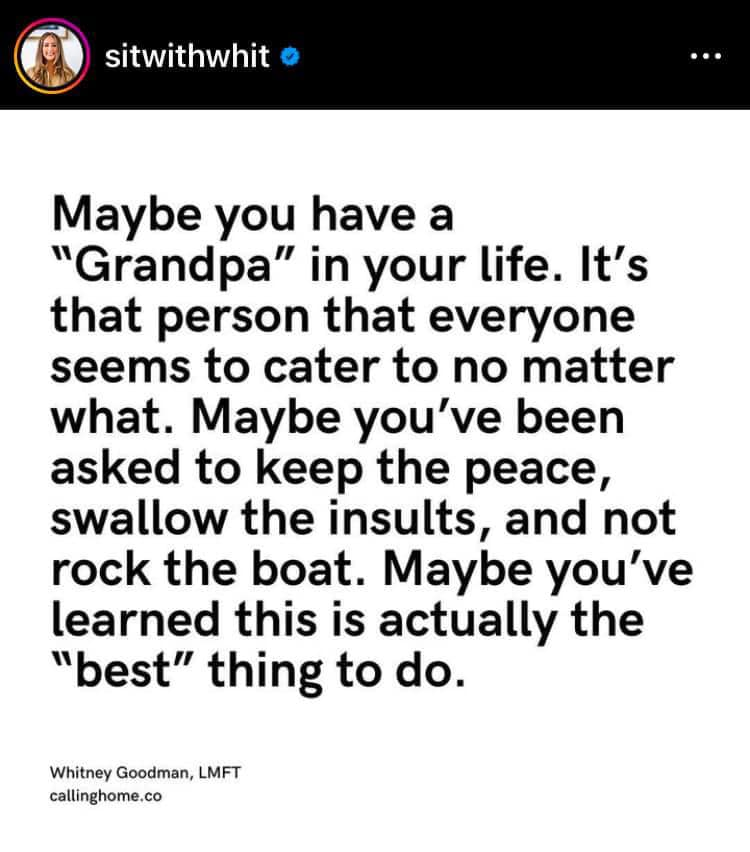 They stopped asking me to xmas day when I slapped the beer out of grandpa's hand and screamed "eff you" in his face. Additionally, after the fall out got out, I have been invited to too many xmas parties to possibly attend in one day.Remember that not everyone has a happy home, not everyone has a family that they can feel safe or be happy around. So here's a friendly reminder for those of us who like to think of ourselves as "allies."