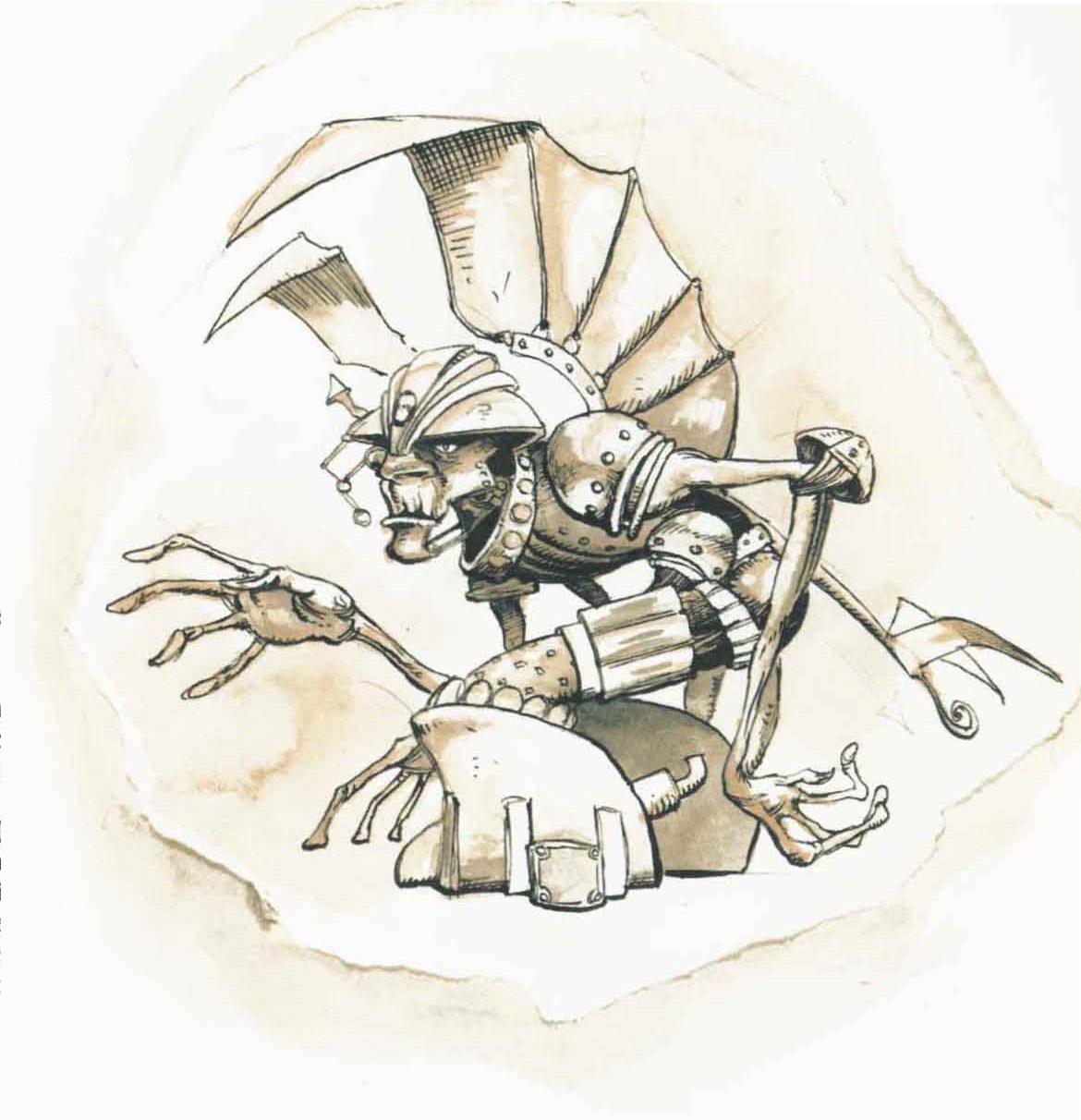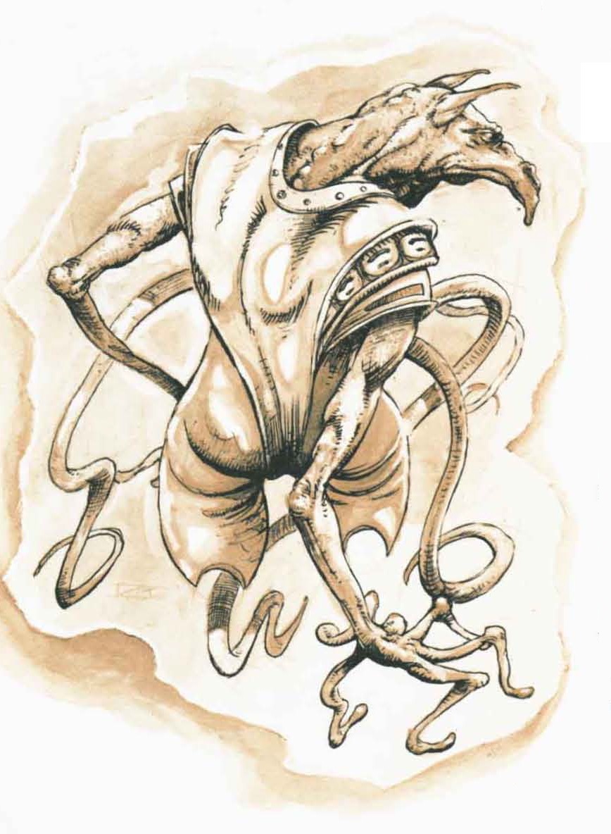The Great Modron March has artwork of almost every type of Modron, from Monodrones to Quinton (and even Primus). I am pretty sure they based the 5E Nonaton on the 2E from this book, thankfully removing the mouth-tentacles and adding an extra arm on top.Lol no problem. Official art for some of the heirarch modrons, especially the nonaton, is very sparse. I think that all there is for them is the 1e MM2 (where they're more cylindrical) and a background shot or two in the 2e Planescape Planes of Law set (where they're more worm-like, as here). The Planescape set's monster booklet only has art for mondrones, a quadrone, and a decaton, and that's it for the entire modron entry that covers all of the variants all the way up to Primus. It will be very nice to have clear, modern artwork for the hierarchs like we're seeing here (and with a cool, but logical, more mechanized reinterpretation)...