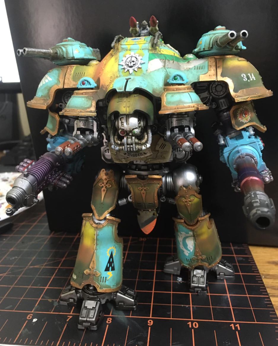 Really like the colors!My latest Imperial Knight is a Castellan model. I've pretty much got a whole army now and don't really need to make any additional purchases. I'll be getting a bonus this year so I might buy a Forge World knight model. But it's not like I need it.