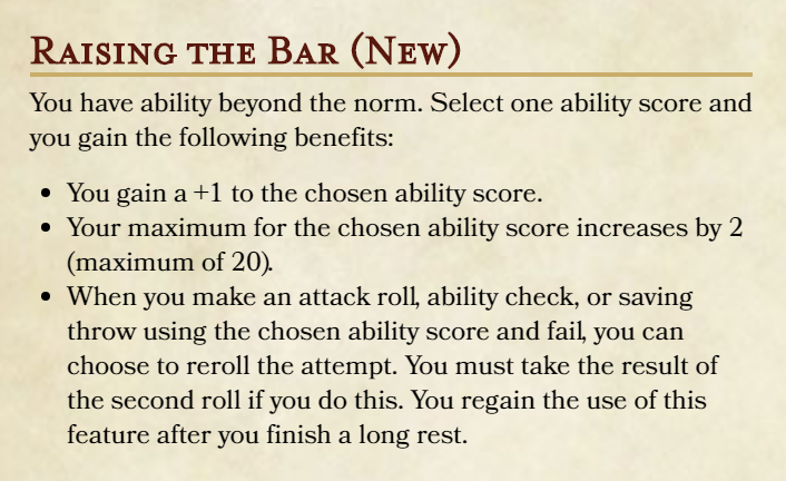 I'll revise Raising the Bar to bump the cap +2. So, a 16 can become an 18, and an 18 could still become a 20! YIKES! :eek: Totally awesome level of ability now!