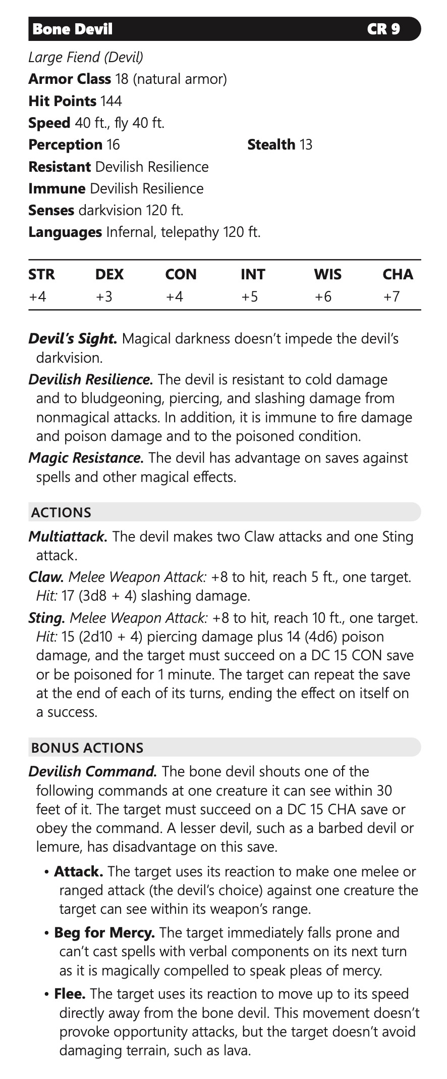 CR 9 Bone Devil from Monster Vault: