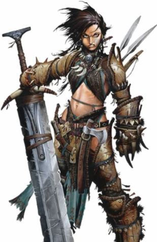 I hate the iconic barbarian from Pathfinder. And 90% of my hatred for this image is because of the surfboard she insists on calling a sword. I know some people think it looks cool but I think it just looks silly. Even Games Workshop artists look at that and say, "Whoa, maybe scale back the weapon a bit?" I can accept a gnome sorcerer trapping people in magical webs without blinking but I simply cannot accept that stupid sword. I just can't believe it. It's broken me in a way that magic hasn't.