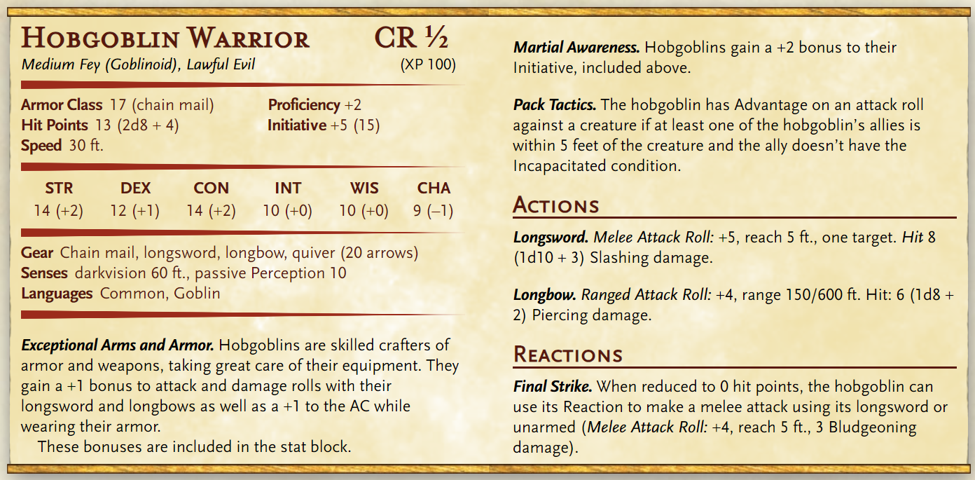 From the other thread, concerning hobgoblins, here is my re-write for the Hobgoblin Warrior.
