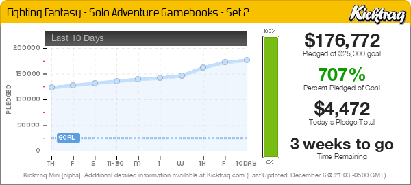 - MOST POPULAR PLEDGE: $80 + S/H for 5 Fighting Fantasy books in a slipcase