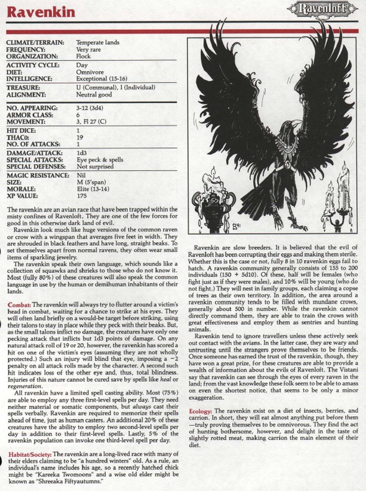 That's a good one. I would either go with some sort of raven race or create a race based on this bird.