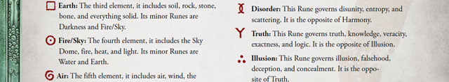 Regarding the runes, you choose them in the next step of character creation, and have scores in % like skills. The runes help determine your character's personality, have an influence over her characteristics and are useful to determine the cult she belongs to. You choose 3 elemental runes: air, earth, fire, darkness and moon, and then choose two main power runes, which are set as opposite pairs. For example, if you have 75% in the Death rune, you will have only 25% in the Life rune. The list of runes has been simplified to better conform to these opposed pairs, so for example the Communication rune is considered here part of the Harmony rune. Finally you distribute some points in all the runes you have.