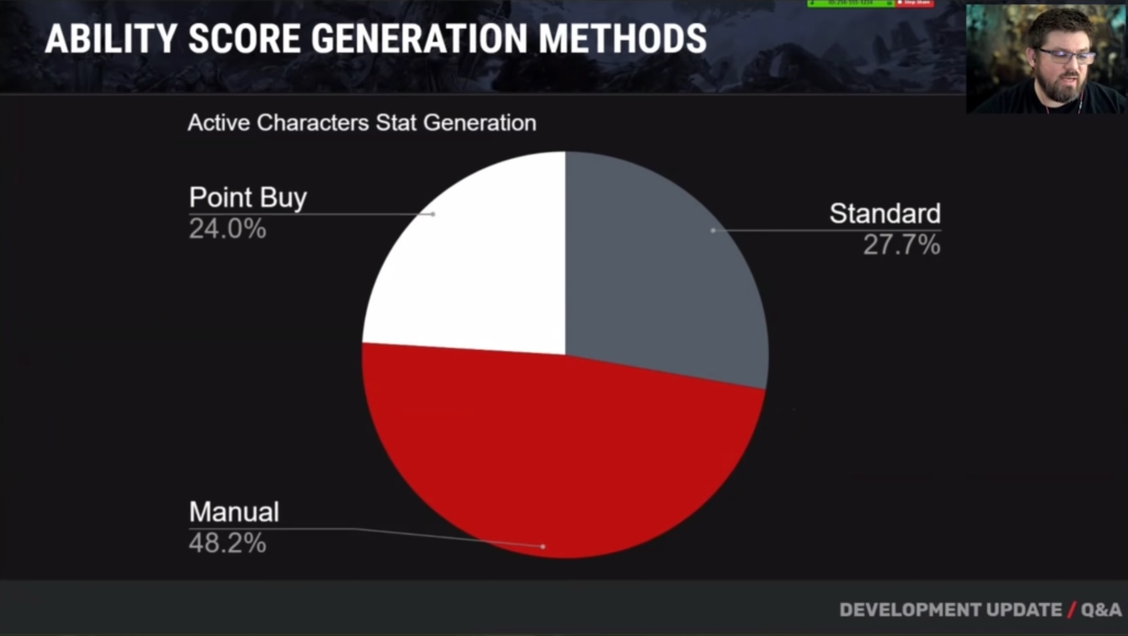 Rolling for stats seems to be phasing out. According to the latest data more than half of D&D players turn to nonrandom methods for generating attributes.