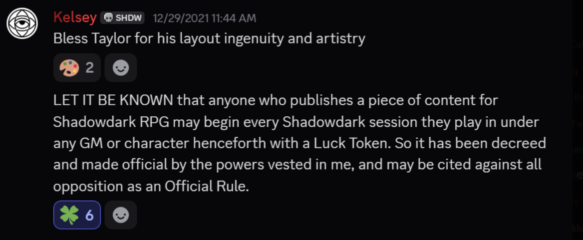 "Sorry, I get a bonus luck token. Let me show you the link to my DTRPG page."