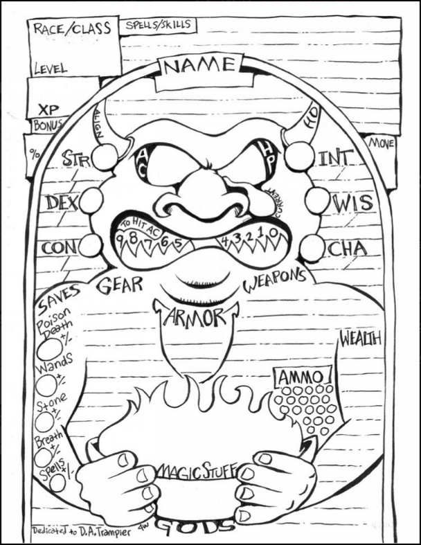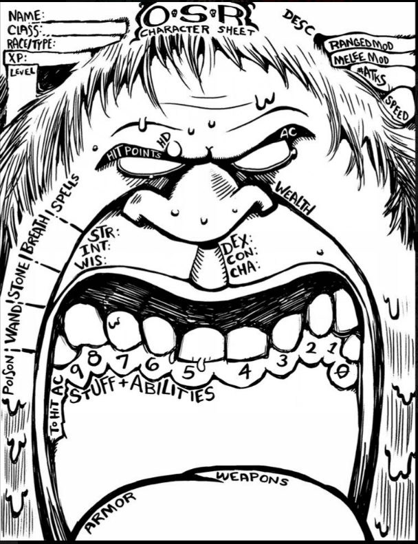 Someone needs to give James V. West (Black Pudding, Gozr) a nudge of inspiration. He's done a million cool artistic sheets for B/X, and for some other games.