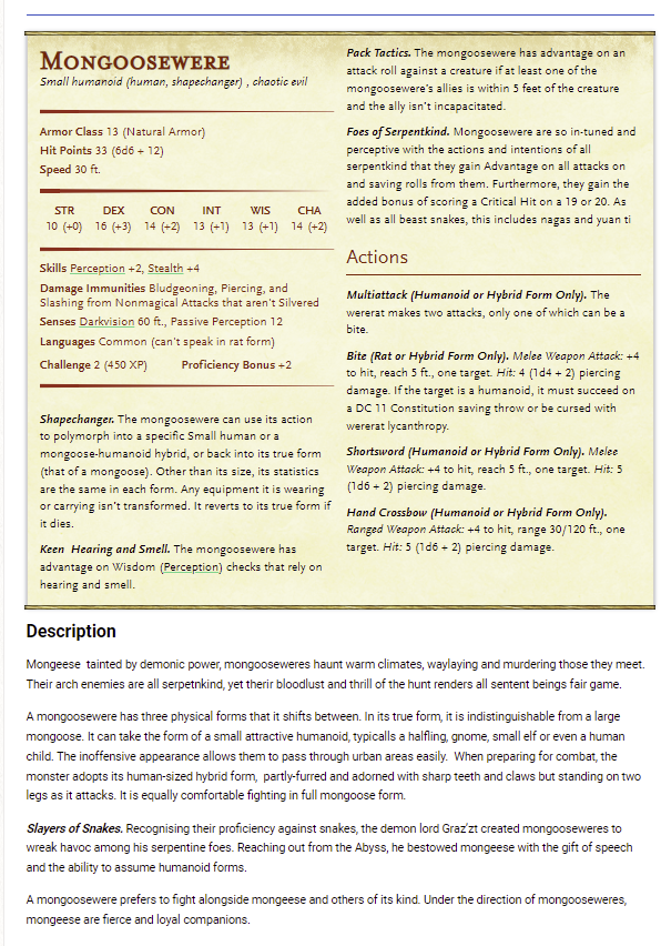 all input much appreciated and will be prioritised post-haste. Note that Wolfweres have entered canon too..(in my campaign, which has COld Iron as a Thing - they'll all be silvier immune and hittable by cold iron)