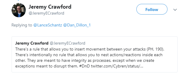Also, his sudden insistence that any action, including the Attack action, is 'indivisible', is given the lie by....well...the many, many things in the game which literally can and do occur