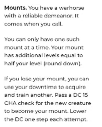I haven't played with Mounts yet so I can't really judge the Paladin yet. The rules are kind of shallow which I dislike in this particular case. I feel like there should be a meaningful drawback or risk-reward mechanic of mounted combat except "this is really expensive to maintain and buy" that is also not highly dependent on Negative GM Fiat.