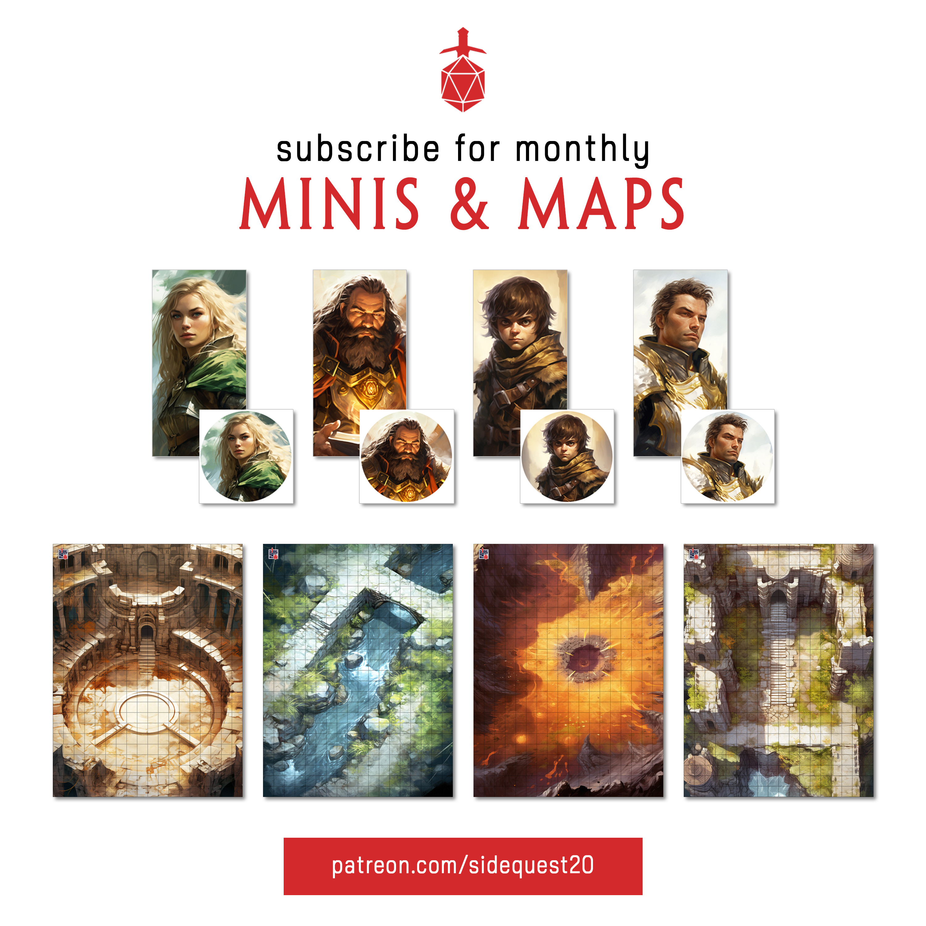 We're excited to announce our expansion to PATREON where subscribers will receive (4) battle maps and/or (4) 2D minis/tokens per month, all for the price of a cup of coffee