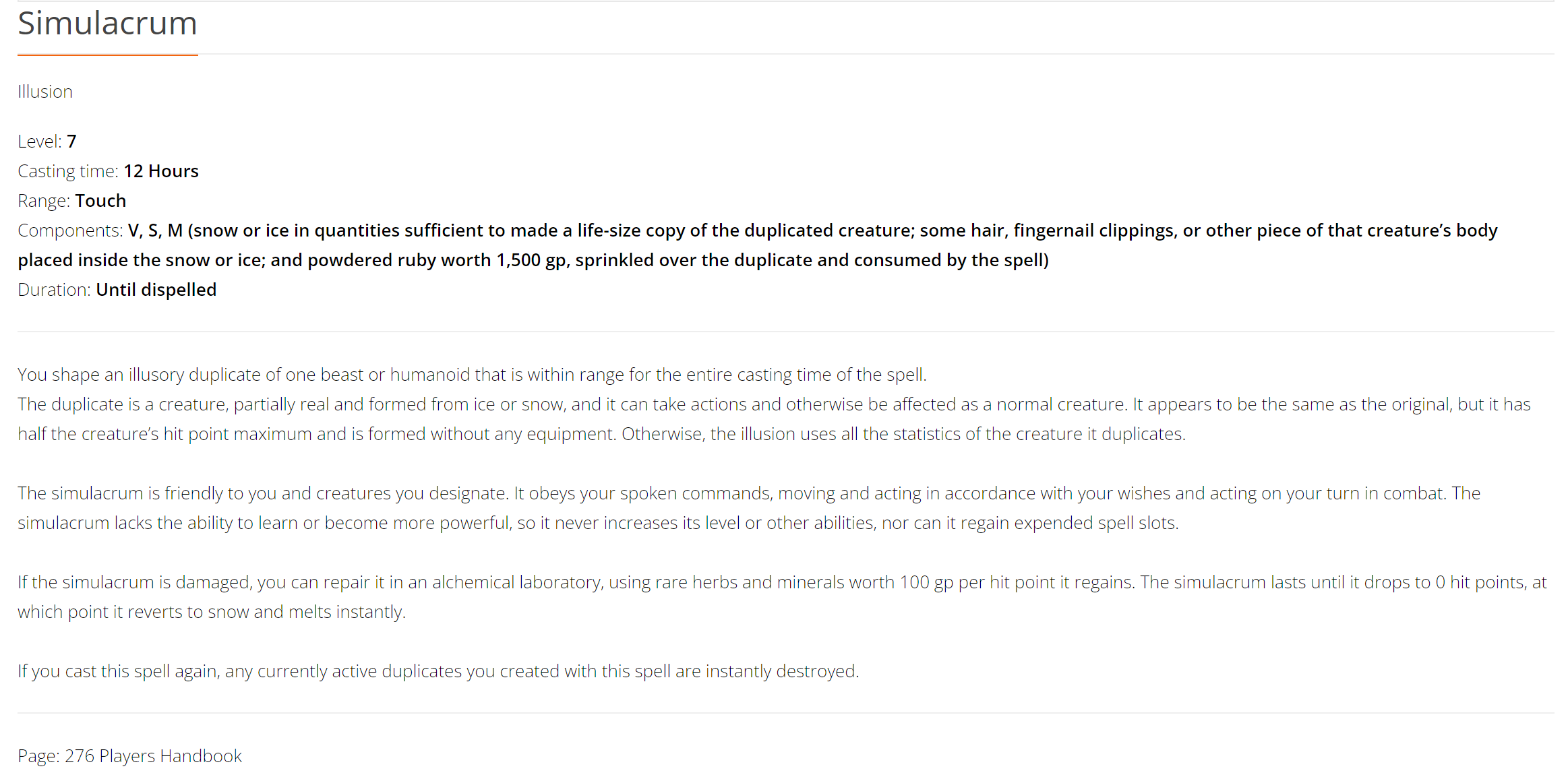 "Otherwise, the illusion uses all the statistics of the creature it duplicates."
