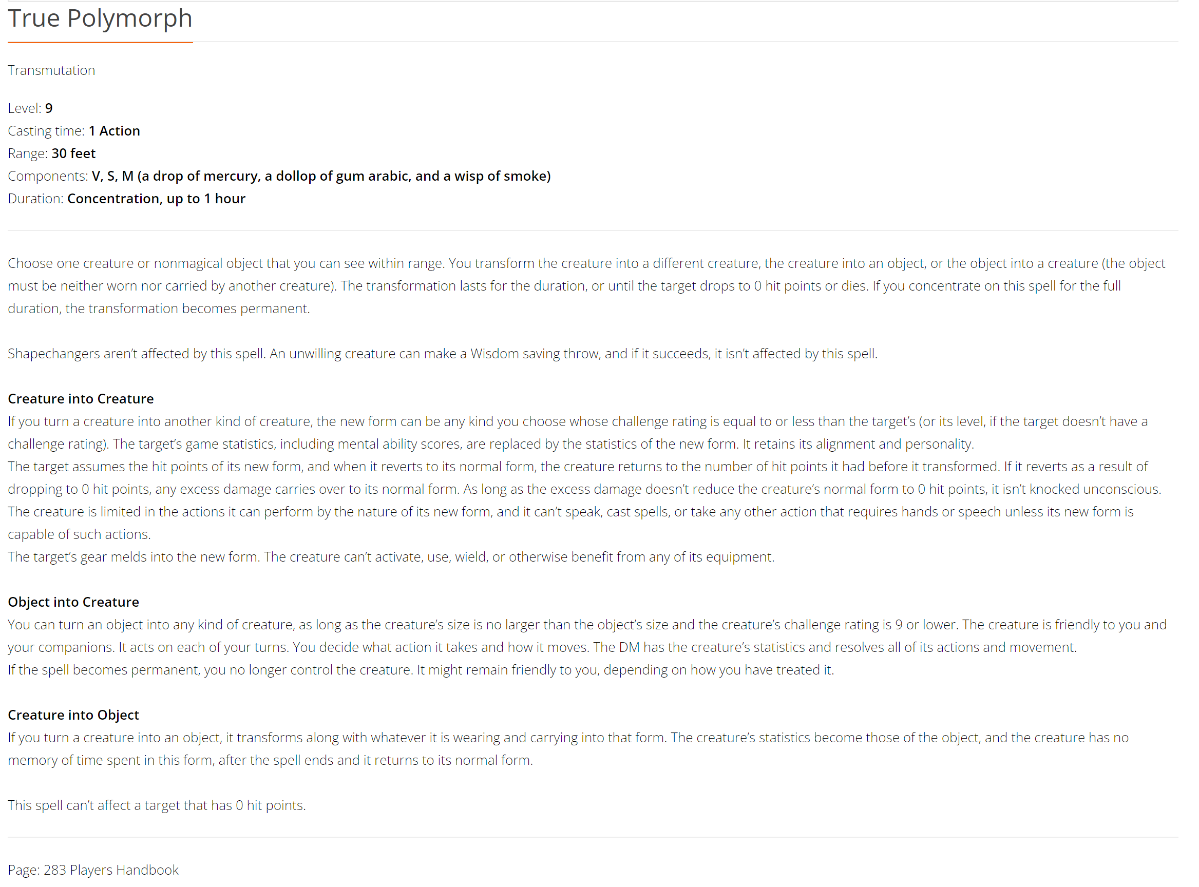 magical object, so True Polymorph would not work in that way, either.